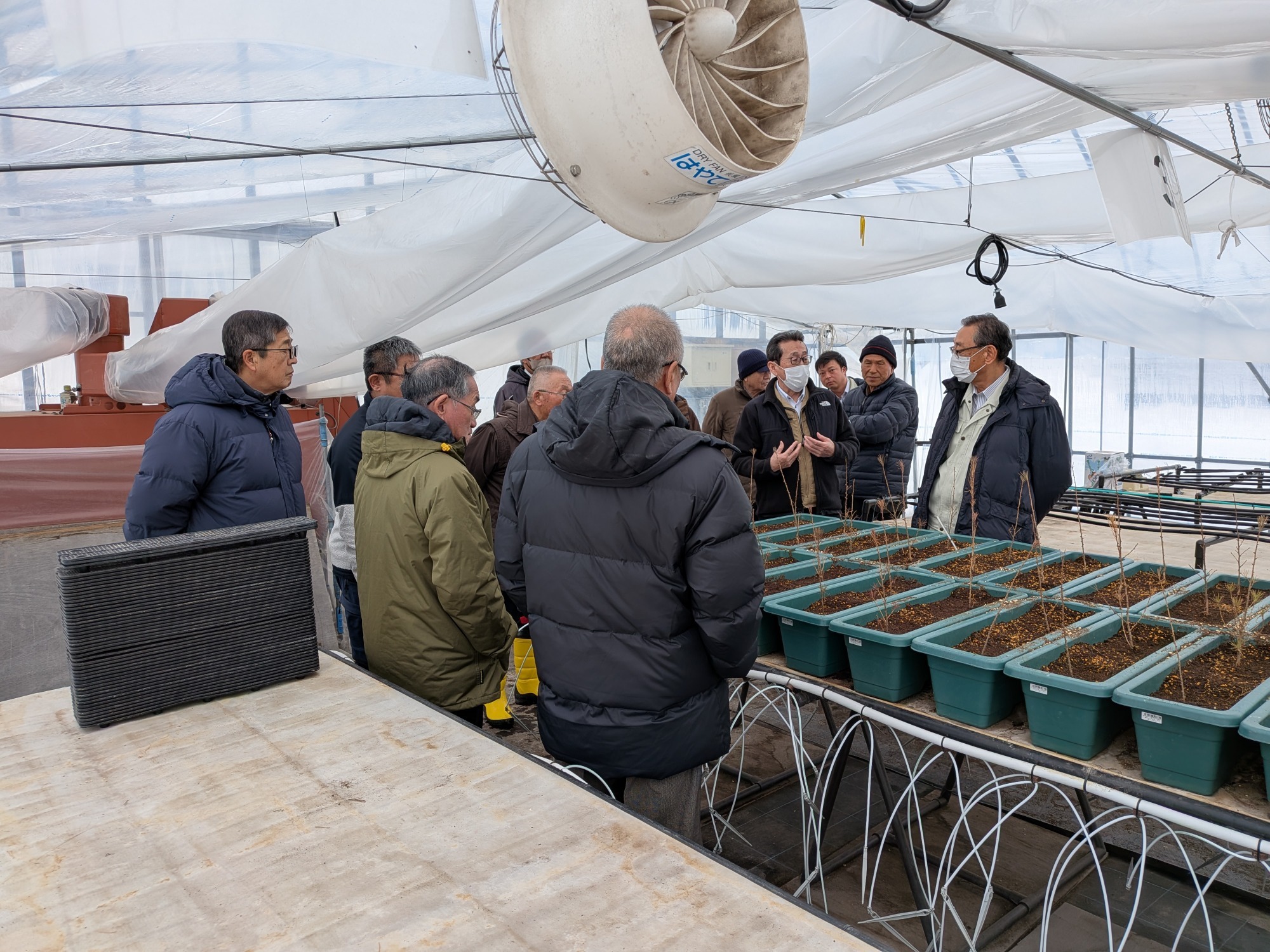 令和8年2月27日 クリーンラーチ台木育苗視察(当麻農協育苗ハウス)理事6名、監事2名